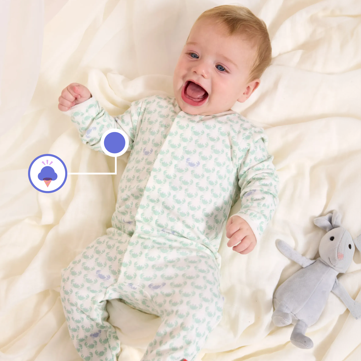GOTS-certified, with fluffy softness on delicate skin.