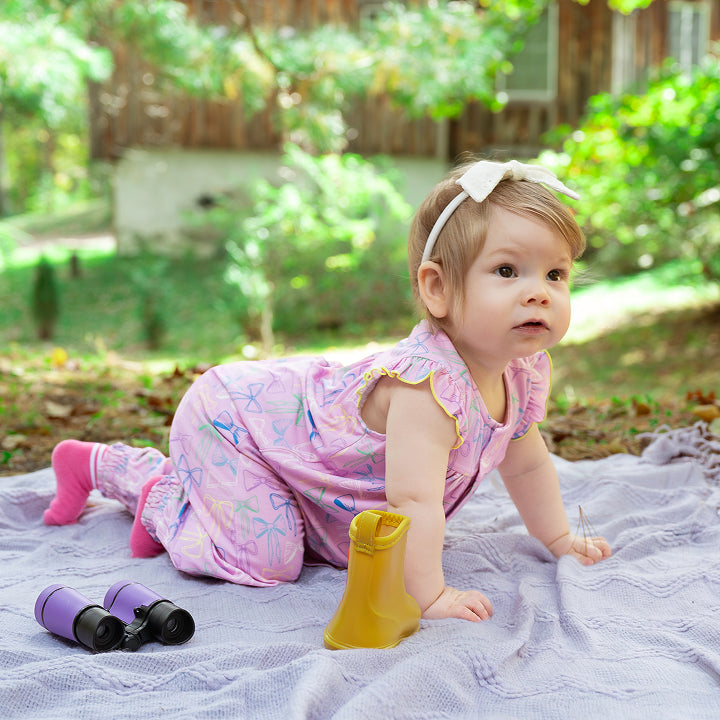 Our Bubble Romper features magnets at the back and bottom for easy dressing and quick changes, with ruffles that are dressed up for parties or playdates. Made from silky-soft modal, it has an even roomier fit that gives active babies freedom to move, all with magnets that stay shut.